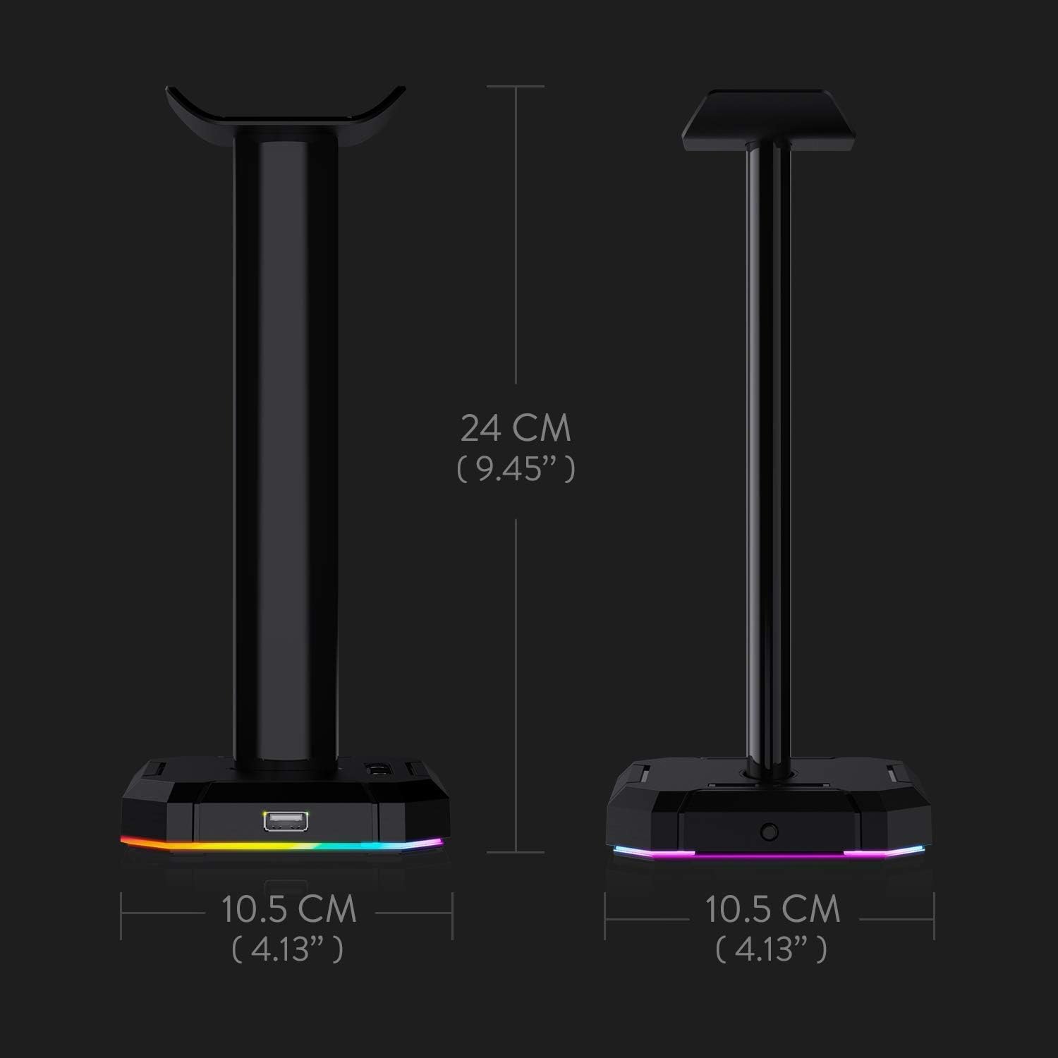 Núcleo resistente con seguridad: la barra de soporte de 8,5 pulgadas de altura sujetará y protegerá bien sus auriculares. La cubierta giratoria para los 2 puertos USB de superficie se puede cerrar para evitar el agua o el polvo cuando necesite que esos concentradores USB se tomen un descanso.