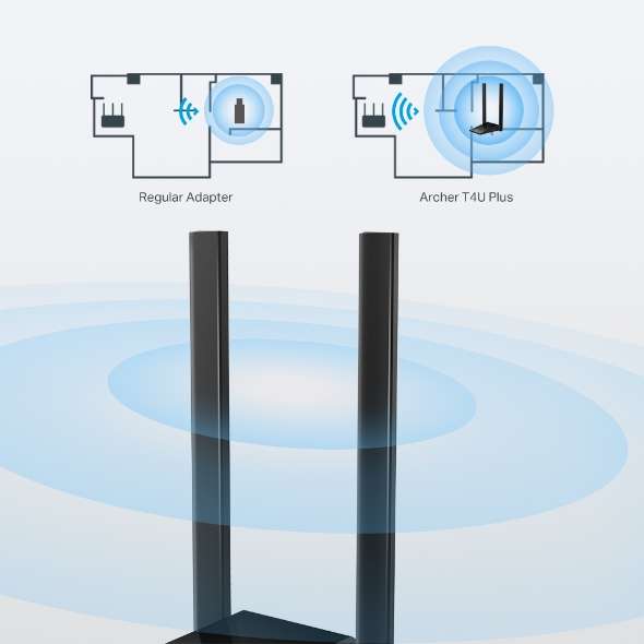 Ya no hace falta comprar un PC nuevo. Con el adaptador Wi-Fi USB Archer T4U Plus puedes actualizar tu PC para aumentar la velocidad de conexión a internet de tu ordenador. Recibe las señales Wi-Fi de tu red en dos bandas separadashasta 400 Mbps en 2.4 GHz y 867 Mbps en 5 GHz.